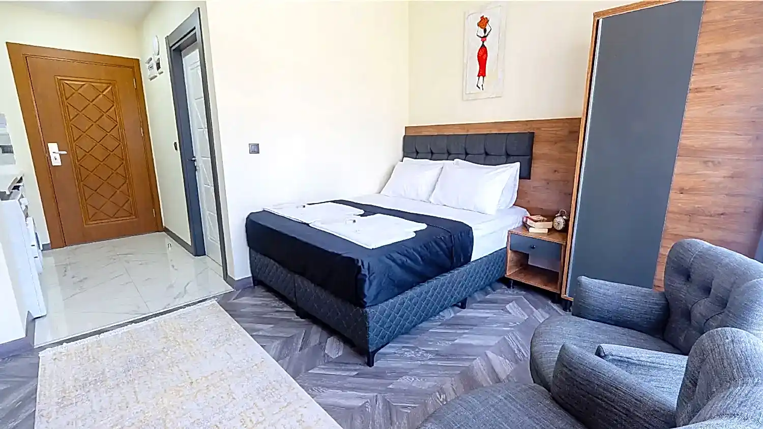 Modern çizgiler taşıyan odalarımız, tüm ihtiyaçlarınızı karşılayacak kalitede ve güvende tasarlanmış olup, konforunuz ve rahatlığınızı ön planda tutacaktır.